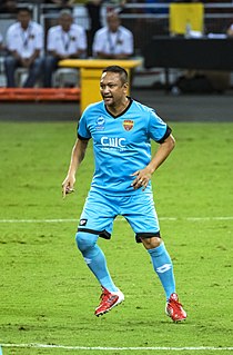 Fandi bin Ahmad, is a Singaporean former footballer who is currently the head coach of Singapore Premier League club Young Lions. He mainly played as a striker, but also played as a midfielder. He played for Malaysia Cup state sides Singapore FA, Kuala Lumpur FA and Pahang FA, and won titles with all three, including two Doubles in 1992 and 1994, and the Golden Boot in 1988. Fandi also played for Niac Mitra (Indonesia), Groningen (Netherlands), Geylang United (Singapore) and SAFFC (Singapore). With the Singapore national team, Fandi won 101 caps, scored 55 goals, won three Southeast Asian Games silver medals and was captain from 1993 to 1997. He managed SAFFC, Pelita Raya (Indonesia) and Johor Darul Takzim (Malaysia), served as assistant national coach and runs the Fandi Ahmad Academy. As a 1994 winner of the Pingat Bakti Masyarakat, the first Singaporean footballer to play in Europe, the first Singaporean millionaire sportsperson and first Singaporean sportsperson to have a published biography, Fandi has been called a national legend. He has five children with his wife, South African model Wendy Jacobs, and his father is Ahmad Wartam, a former national goalkeeper. Fandi was ranked sixth in a list of Singapore's 50 Greatest Athletes of the Century by The Straits Times in 1999.
