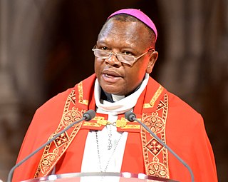 Fridolin Ambongo Besungu OFMCap is a Congolese prelate of the Catholic Church. He has been the Archbishop of Kinshasa since his appointment on 1 November 2018. He has been a bishop since 2004 and before becoming Archbishop of Kinshasa was Bishop of Bokungu-Ikela from 2004 to 2016, Apostolic Administrator of Kole from 2008 to 2015, Apostolic Administrator of Mbandaka-Bikoro in 2016 and Archbishop there from 2016 to 2018, Apostolic Administrator of Bokungu-Ikela from 2016 to 2018, and Coadjutor Archbishop of Kinshasa in 2018.