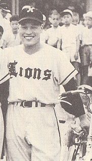 Futoshi Nakanishi is a Japanese former professional baseball infielder, coach, and manager. He spent all of his playing career with the Nishitetsu Lions of Nippon Professional Baseball, and served as player-manager of the team from 1962 to 1969. Nakanishi also managed the Nippon Ham-Fighters, Hanshin Tigers, Yakult Swallows, and Chiba Lotte Marines. He coached for the Swallows, Kintetsu Buffaloes, Yomiuri Giants, and Orix BlueWave.