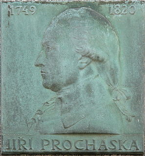 Georg Prochaska was a leading Czech-Austrian anatomist, ophthalmologist, physiologist, writer and university professor. He wrote the first genuine textbook on physiology and created the concept of nerve conduction among other theories. He was a staunch promoter of the modern reflex theory.