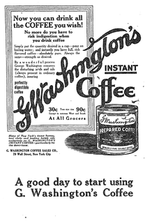 George Constant Louis Washington was a Belgian-born American inventor and businessman. He is best remembered for his invention of an early instant coffee process and for the company he founded to mass-produce it, the G. Washington Coffee Company.