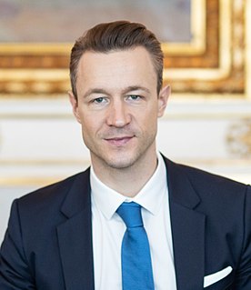 Gernot Blümel is an Austrian politician of the Austrian People's Party (ÖVP). He is Austria's finance minister since 2020. Since 2015, he has been the chairman of the Vienna branch of the ÖVP. Prior, he was Chancellery minister for European Affairs, Art, Culture, and Media from 2017 to 2019; he was also General Secretary of the ÖVP from 2013 to 2015.