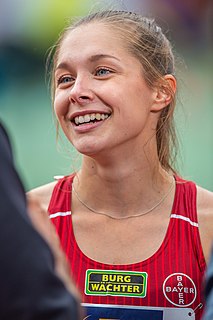 Gina Lückenkemper is a German track and field athlete who competes in the sprints. She won gold in the 200 metres at the 2015 European Junior Championships. She took part in the 100 metres at the 2015 and 2017 World Championships.