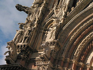 Giovanni Pisano was an Italian sculptor, painter and architect, who worked in the cities of Pisa, Siena and Pistoia. He is best known for his sculpture which shows the influence of both the French Gothic and the Ancient Roman art. Henry Moore, referring to his statues for the facade of Siena Cathedral, called him "the first modern sculptor".