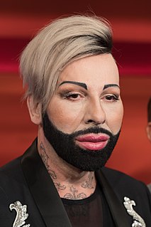 Harald Glööckler, real name Harald Glöckler, is a German fashion designer and entrepreneur, who became famous mainly for his rhinestone-studded and glittering creations. Glööckler's trademark is a crown motif, which is often supplemented by a "POMPÖÖS" lettering.