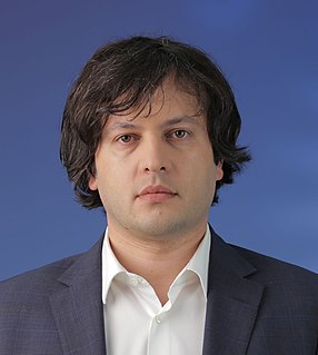 Irakli Garibashvili is a Georgian politician and the current Minister of Defense of Georgia. He served as the Prime Minister of Georgia from November 20, 2013 until his resignation on December 29, 2015, and is a former business executive. Garibashvili entered politics with his long-time associate, the businessman Bidzina Ivanishvili, in October 2012. He served as Minister of Internal Affairs in the cabinet of Bidzina Ivanishvili from 2012 to 2013. Ivanishvili named Garibashvili as his successor as Prime Minister when he voluntarily stepped down in November 2013. Aged 31 at his ascension, he was the youngest person to assume the PM office. During his term, he was the second youngest state leader in the world, after Kim Jong-un.