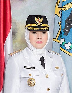 Irna Narulita is an Indonesian politician and the current regent of Pandeglang Regency. In 2017, she oversaw the regency's 143rd anniversary.