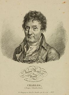 Jacques Alexandre César Charles was a French inventor, scientist, mathematician, and balloonist. Charles wrote almost nothing about mathematics, and most of what has been credited to him was due to mistaking him with another Jacques Charles, also a member of the Paris Academy of Sciences, entering on May 12, 1785. He was sometimes called Charles the Geometer. Charles and the Robert brothers launched the world's first unmanned hydrogen-filled gas balloon in August 1783; then in December 1783, Charles and his co-pilot Nicolas-Louis Robert ascended to a height of about 1,800 feet in a manned gas balloon. Their pioneering use of hydrogen for lift led to this type of balloon being named a Charlière.