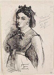 Jeanne Duval was a Haitian-born actress and dancer of mixed French and black African ancestry. For 20 years, she was the muse of French poet and art critic Charles Baudelaire. They met in 1842 when Duval left Haiti for France, and the two remained together, albeit stormily, for the next two decades. Duval is said to have been the woman whom Baudelaire loved most in his life after his mother. She was born in Haiti on an unknown date, sometime around 1820.