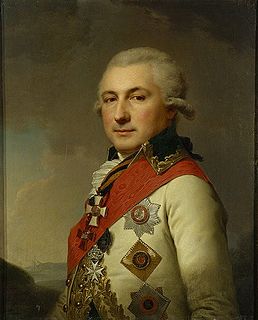 Josep de Ribas y Boyons, known in Spanish as José Pascual Domingo de Ribas y Boyons and in Russian as Iosif (Osip) Mikhailovich Deribas, was an Italo-Spanish military officer from Naples, in Russian service. After Empress Catherine took advantage of Potocki's successful international trading post of the Polish Black Sea Trading Company, in Russian-ruled Kherson, she founded Odessa. In recognition of de Ribas' famous victory at nearby Khadjibey, the future city's most famous street, Deribasovskaya, was named after him. José de Ribas is one of the principal figures on the monument of Catherine the Great in Odessa and there is small personal monument to him at the beginning of Deribasovskaya street.