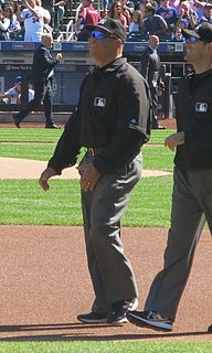 Kerwin Joseph Danley is an American umpire in Major League Baseball who has worked in the National League (NL) from 1992 to 1999 and throughout both leagues since 2000. Danley has worked the American League Division Series six times. He also umpired in the 2007 and 2016 Major League Baseball All-Star Games. Kerwin is married to Marisa Danley.