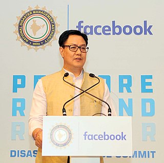 Kiren Rijiju is an Indian lawyer and politician from Arunachal Pradesh. A member of the Bharatiya Janata Party, Rijiju is the current Minister of State of the Ministry of Youth Affairs and Sports and Minister of State in the Ministry of Minority Affairs of India.