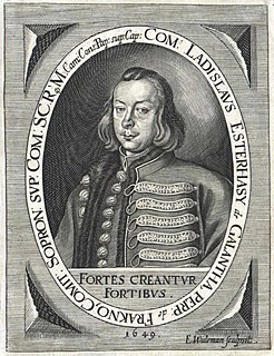 Count Ladislaus Esterházy de Galánta was a Hungarian noble, son of Nikolaus, Count Esterházy, who served as Palatine of Hungary. He was a general in the Imperial Army and fought against the Ottoman Empire.