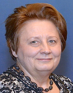 Laimdota Straujuma is a Latvian economist who was the Prime Minister of Latvia from January 2014 to February 2016. Before her tenure as Prime Minister, she served as Minister of Agriculture from 2011 to 2014. She was the first woman to serve as the head of government of the country. After her resignation on 7 December 2015 she announced her intention to resume a seat in the Saeima.