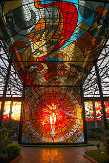 Leopoldo Flores was a Mexican artist mostly known for his murals and other monumental works which are concentrated in the city of Toluca, State of Mexico. He was born into a poor family in rural State of Mexico, but his artistic ability was evident early and he was able to attend the Escuela Nacional de Pintura, Escultura y Grabado "La Esmeralda" and receive a scholarship to study in Paris. His best known works are the Cosmovitral a large work in stained glass and the Aratmósfera, a “land art” piece both located in Toluca. The first is used as a symbol for the State of Mexico and the latter dominates the main stadium and the hill behind it at the main campus of the Universidad Autónoma del Estado de México (UAEM). He received a number of recognitions of his work from the State of Mexico and an honorary doctorate from the UAEM, which also founded the Museo Universitario Leopoldo Flores to house and promote his work. Despite advanced Parkinson's disease, until his death Flores was still an active artist.