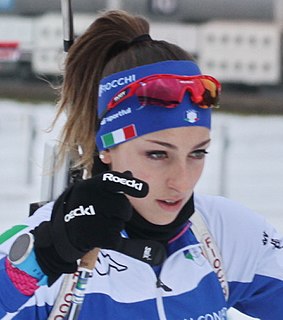 Lisa Vittozzi is an Italian biathlete. She competes in the Biathlon World Cup, Vittozzi has won a bronze medal at the Biathlon World Championships 2015 in Kontiolahti.