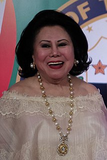 Luisa Pimentel-Ejercito is a Filipino politician and psychiatrist who served as a Senator of the Philippines from 2001 to 2007. She is the wife of former Philippine President Joseph Ejercito Estrada, and was the twelfth First Spouse of the Philippines from 1998 to 2001. Her son, Jinggoy Ejercito Estrada, was a senator in the 15th Congress of the Philippines.