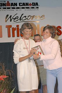 Madonna Buder, S.F.C.C., also known as the Iron Nun, is a Roman Catholic religious sister and Senior Olympian triathlete. Buder has the current world record for the oldest woman to ever finish an Ironman Triathlon, which she obtained at age 82 by finishing the Subaru Ironman Canada on August 26, 2012.