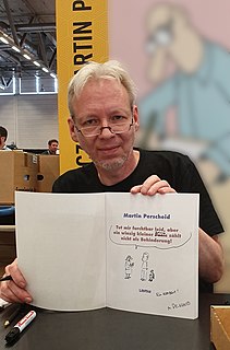 Martin Perscheid was a German cartoonist. He created a main character in 1994, who appeared from 1998 under the title Perscheids Abgründe. More than 4,300 strips appeared in several German newspapers and magazines. He is known for his "fearless glimpses into human abysses of sexism, racism, ignorance, corruption and stupidity, captured with black humour."