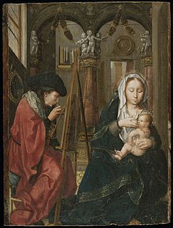 The Master of 1518 is a Flemish painter belonging to the stylistic school of Antwerp Mannerism. A group of unsigned paintings is attributed to this artist on stylistic grounds, and his name is derived from the date inscribed on the painted wings of a carved wooden altarpiece of the Life of the Virgin in St. Mary's Church in Lübeck Germany. Although this artist’s identity is not known with certainty, some scholars believe that the Master of 1518 was either Jan Mertens the Younger or Jan van Dornicke, or that all three were the same person. His paintings are primarily crowded depictions of religious scenes combining Gothic and Renaissance styles. He frequently incorporated elaborate clothing and architectural ruins.