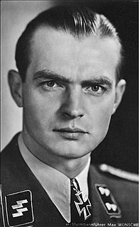 Max Wünsche was a member of the SS of Nazi Germany and a regimental commander in the Waffen-SS during World War II. He was a recipient of the Knight's Cross of the Iron Cross with Oak Leaves.