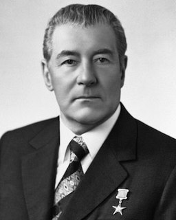 Mikhail Sergeyevich Solomentsev was a high-ranking Soviet politician and statesman. He was born near Yelets and graduated from the Leningrad Technological Institute in 1940. Solomentsev was a leading Communist Party functionary in Kazakhstan during 1962–1964 and was in charge of the Rostov-on-Don obkom from 1964–1966.