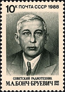 Mikhail Aleksandrovich Bonch-Bruevich, sometimes spelled Bonch-Bruyevich, was a Russian engineer, scientist, and professor. Generally considered the leading authority on radio in Russia in the first decades of the 20th century, he greatly influenced the pre-radar development of radio-location in that nation.