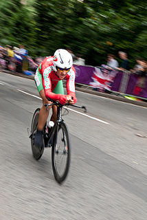 Mouhssine Lahsaini is a Moroccan road bicycle racer. He competed at the 2012 Summer Olympics in the Men's road race, and in the men's time trial, finishing 34th, 6 minutes and 45 seconds behind winner Bradley Wiggins.