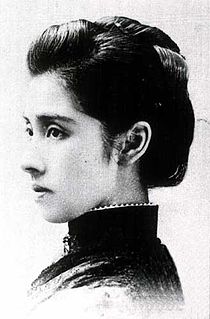 Countess Mutsu Ryōko was a Japanese noblewoman and humanitarian. She was a member of the Japanese Red Cross Society and the wife of Count Mutsu Munemitsu. She was called "the flower of Washington society" for her beauty and intelligence.