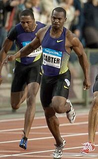 Nesta Carter OD is a Jamaican sprinter who specializes in the 100 metres event. Carter has been successful as part of the Jamaican 4 x 100 metres relay team, taking gold and setting successive world records at the 2011 World Championships and 2012 London Olympics. He also won a 4 x 100m silver medal at the 2007 World Championship and a gold at the 2015 World Championships. On August 11, 2013, Carter secured an individual 100m World Championship bronze medal in Moscow, behind Justin Gatlin and teammate Usain Bolt. He followed this with another gold in the 4 x 100 metres relay.