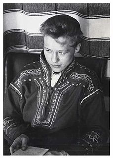 Nils-Aslak Valkeapää, known as Áillohaš in the Northern Sami language, was a Finnish Sami writer, musician and artist. He was born in Enontekiö in Lapland province, Finland. He lived most of his life in Käsivarsi, close to the border of Sweden, and also in Skibotn in Norway. Valkeapää was born to a family of traditional reindeer herders, but was trained as a school teacher. His most well-known international debut was when he performed at the opening ceremony of the 1994 Winter Olympic Games in Lillehammer, Norway. He received the Nordic Council Literature Prize for The Sun, My Father in 1991.