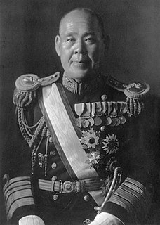 Osami Nagano was a Marshal Admiral of the Japanese navy and one of the leaders of Japan's military during most of the Second World War. In April 1941, he became Chief of the Imperial Japanese Navy General Staff. In this capacity, he served as the navy’s commander-in-chief in the Asia-Pacific theater until his removal in February 1944. After the war, he was arrested by the International Military Tribunal for the Far East but died of natural causes in prison during the trial.