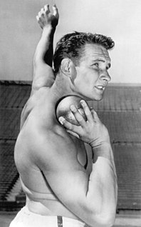 William Patrick "Parry" O'Brien was an American shot put champion. He competed in four consecutive Summer Olympics where he won two gold medals and one silver medal (1960). In his last Olympic competition (1964) he placed fourth. For all of these accomplishments, O'Brien was inducted into the IAAF and U.S. Olympic halls of fame.