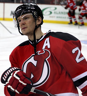 Patrik Eliáš is a Czech former professional hockey winger who played 20 seasons in the National Hockey League (NHL) with the New Jersey Devils. Eliáš is the franchise's all-time leader in points, goals and assists, and he holds the franchise records for the most points in a season (96) along with most career game-winning goals (79). Eliáš has won the Stanley Cup twice with the Devils, in 2000 and 2003. He also ranks second in points by a Czech-born player in the NHL behind Jaromír Jágr.