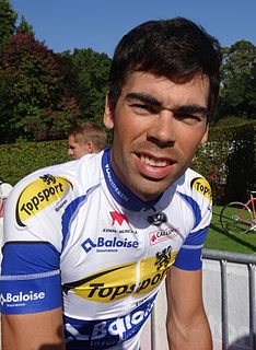 Pieter Jacobs is a Belgian former professional road bicycle racer, who competed professionally between 2007 and 2016 for the Unibet.com, Silence–Lotto, Topsport Vlaanderen–Baloise and Crelan–Vastgoedservice teams.