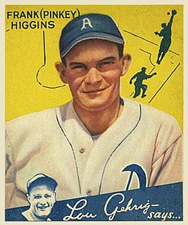 Michael Franklin "Pinky" Higgins was an American third baseman, manager, front office executive and scout in Major League Baseball who played for three teams and served as manager or general manager of the Boston Red Sox during the period of 1955 through 1965. During his playing days, he batted and threw right-handed, and was listed as 6 feet 1 inch (1.85 m) tall and 185 pounds (84 kg).