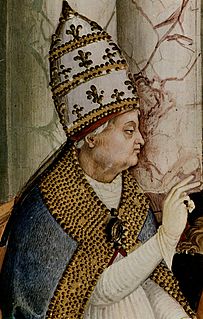 Pope Pius II, born Enea Silvio Bartolomeo Piccolomini, was head of the Catholic Church and ruler of the Papal States from 19 August 1458 to his death. He was born at Corsignano in the Sienese territory of a noble but impoverished family. His longest and most enduring work is the story of his life, the Commentaries, which is the only revealed autobiography ever to have been written by a reigning pope.