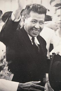 Pridi Banomyong, also known by his noble title Luang Praditmanutham was a Thai politician and professor. As a Thai Regent, prime minister and senior statesman of Thailand, he also held multiple ministerial posts. He was a leader of the civilian wing of Khana Ratsadon, founder of University of Moral and Political Sciences and the Bank of Thailand.