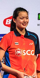 Puttita Supajirakul is a Thai badminton player who competed at the 2016 Summer Olympics in Rio de Janeiro, Brazil. She was part of Thailand's gold medals-winning team at the 2015, 2017 and 2019 Southeast Asian Games in the women's team event. She was also the women's doubles champion at the 2016 Thailand Open.