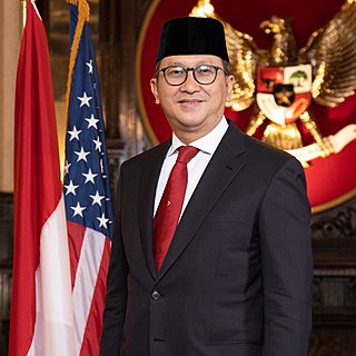 Rosan Perkasa Roeslani is an Indonesian diplomat, businessman, and tech executive who is currently the Indonesian Ambassador to the United States. He is one of the Indonesian trio who have acquired the football club Inter Milan. He was born in Jakarta and is the Chairman of the Recapital Group and Deputy General Chair of the Chamber of Commerce and Industry for Banking and Finance. On November 24, 2015, he was elected as Chairman of Kadin for the period 2015 - 2020. He won 102 votes, beating another candidate for chairman, Rahmat Gobel, who only got 27 votes at the VII Kadin National Conference at the Trans Luxury Hotel, Bandung, West Java. The total votes collected reached 129 votes, consisting of 33 regional Chamber of Commerce and Industry (Kadin) in which each province had 3 voting rights and 30 associations, each of which had 1 vote.