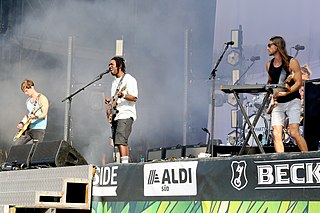 Bloc Party are an English rock band, composed of Kele Okereke, Russell Lissack, Justin Harris and Louise Bartle. Former members Matt Tong and Gordon Moakes left the band in 2013 and 2015 respectively. Their brand of music, whilst rooted in rock, retains elements of other genres such as electronica and house music. The band was formed at the 1999 Reading Festival by Okereke and Lissack. They went through a variety of names before settling on Bloc Party in 2003. Moakes joined the band after answering an advert in NME magazine, while Tong was picked via an audition. Bloc Party got their break by giving BBC Radio 1 DJ Steve Lamacq and Franz Ferdinand's lead singer, Alex Kapranos, a copy of their demo "She's Hearing Voices".