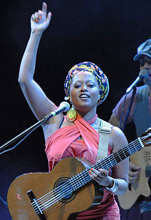Sara Alexandra Lima Tavares is a Portuguese singer, composer, guitarist and percussionist. She was born and brought up in Lisbon, Portugal, where she still lives. Second-generation Portuguese of Cape Verdean descent, she composes African, Portuguese and North American influenced world music. She composes in Portuguese and Portuguese-based creole languages. Although Portuguese is the main language of her songs, it's not rare to find in her repertoire multilingual songs mixing Portuguese with Portuguese creole and even English in the same song.