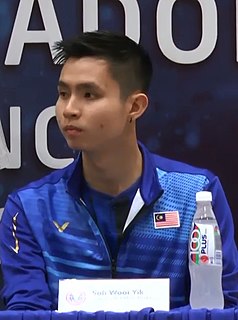 Soh Wooi Yik is a Malaysian badminton player. He was part of the Malaysian 2015 and 2016 BWF World Junior Championships team, and has helped Malaysia clinch a silver medal in mixed team before defeated by China in 2016. He is the son of former Malaysian badminton player Soh Goon Chup. His uncle is Soo Beng Kiang, who partnered with Cheah Soon Kit to help Malaysia win the 1992 Thomas Cup. Soh and his partner Aaron Chia were the All England Open finalists and the Southeast Asian Games gold medalists in 2019.