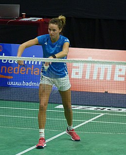 Soraya de Visch Eijbergen is a Dutch badminton player. She won the Dutch National Badminton Championships in 2015, 2016, 2019 and 2020. She won a bronze medal at the 2011 European Junior Badminton Championships in the mixed doubles event. On 25 September 2018, she announced her departure from the Dutch national team and emigration to Switzerland in pursuit of further badminton ambitions. Currently she plays inter-club competition in France for Badminton Club Chambly Oise. She competed at the 2019 Minsk European Games.