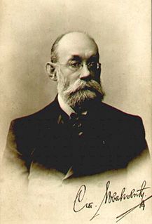Stojan Novaković was a Serbian politician, historian, diplomat, writer, bibliographer, literary critic, literary historian, and translator. He held the post of Prime Minister of the Kingdom of Serbia on two occasions, post of minister of education on three occasions, minister of interior on one occasion and leading the foremost liberal political party of that time in Serbia, the Progressive Party. He was also one of the most successful and skilled Serbian diplomats, holding the post of envoy to Constantinople, Paris, Vienna and Saint Petersburg.