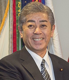 Takeshi Iwaya is a Japanese politician of the Liberal Democratic Party, a member of the House of Representatives in the Diet. He served as the Minister of Defense from 2 October 2018 to 11 September 2019.