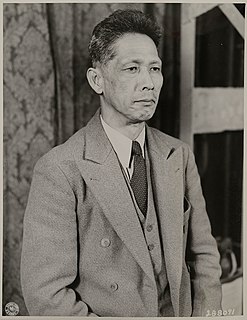 Teiichi Suzuki was a lieutenant general in the Imperial Japanese Army, minister of state and member of the House of Peers. A close associate of Hideki Tojo, he helped plan Japan's wartime economy.