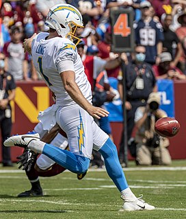 Tyler Long is an American professional football punter for the Los Angeles Chargers of the National Football League (NFL). He most recently played for two seasons with the BC Lions of the Canadian Football League (CFL). He played college football for the University of Alabama at Birmingham and holds records for career field goals as well as the longest field goal in school history. He also has played for the Washington Redskins during the 2015 National Football League (NFL) preseason.