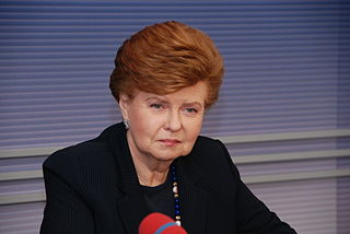 Vaira Vīķe-Freiberga is a Latvian politician who served as the sixth President of Latvia from 1999 to 2007. She is the first woman to hold the post. She was elected President of Latvia in 1999 and re-elected for the second term in 2003.