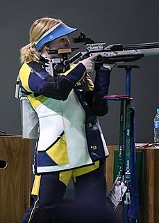 Virginia "Ginny" Thrasher is an American sports shooter who won a gold medal in the women's 10 meter air rifle at the 2016 Summer Olympics. She won the first gold medal awarded at the 2016 Olympics.